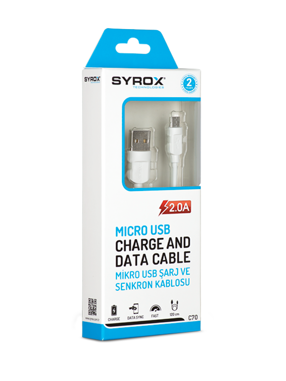 M0262-2A-25CM-C68-Syrox Lightning 5G/5S / 2 Amper 0,25M PowerBank Kablo