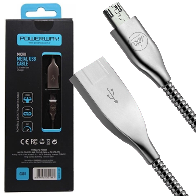 M0218-2A-1,5M-POWERWAY CX-01 SAMSUNG MICRO USB METAL ŞARJ VE DATA KABLOSU